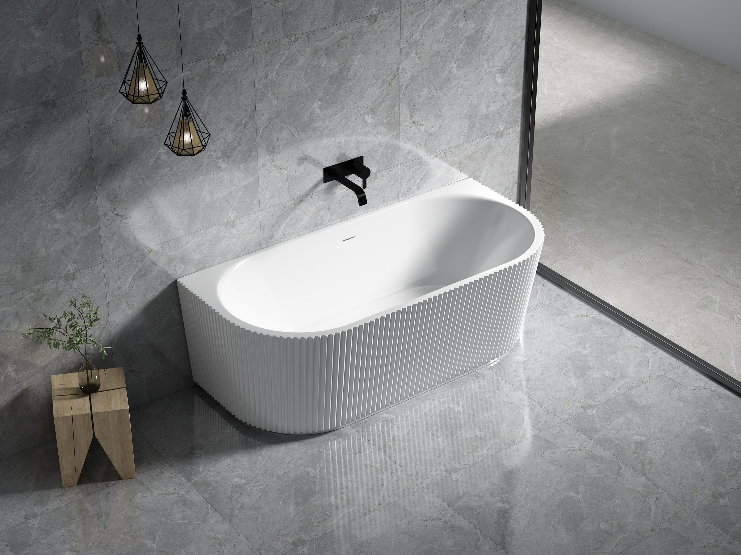 BINGIE Fluted Skirt Back to Wall Bath with Overflow LK-FBG1500/1700-OF