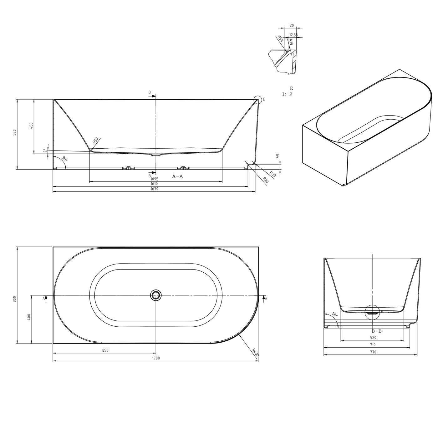 Size 1700x800x580mm