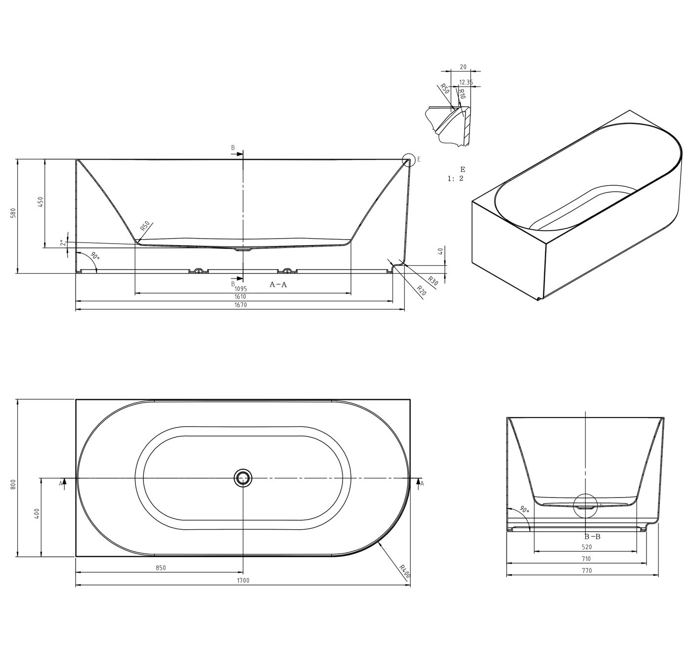 Size 1700x800x580mm
