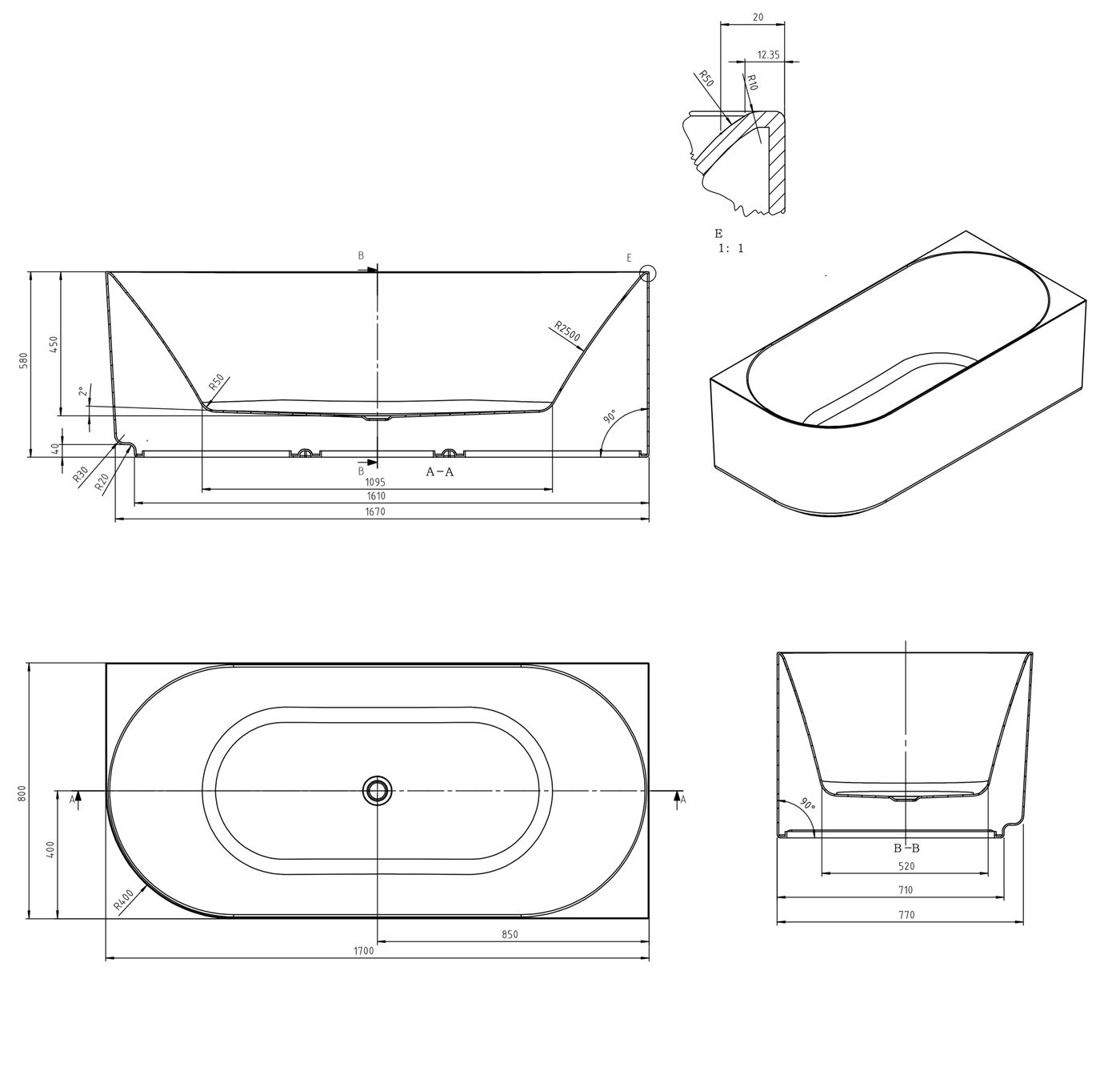 Size 1700x800x580mm