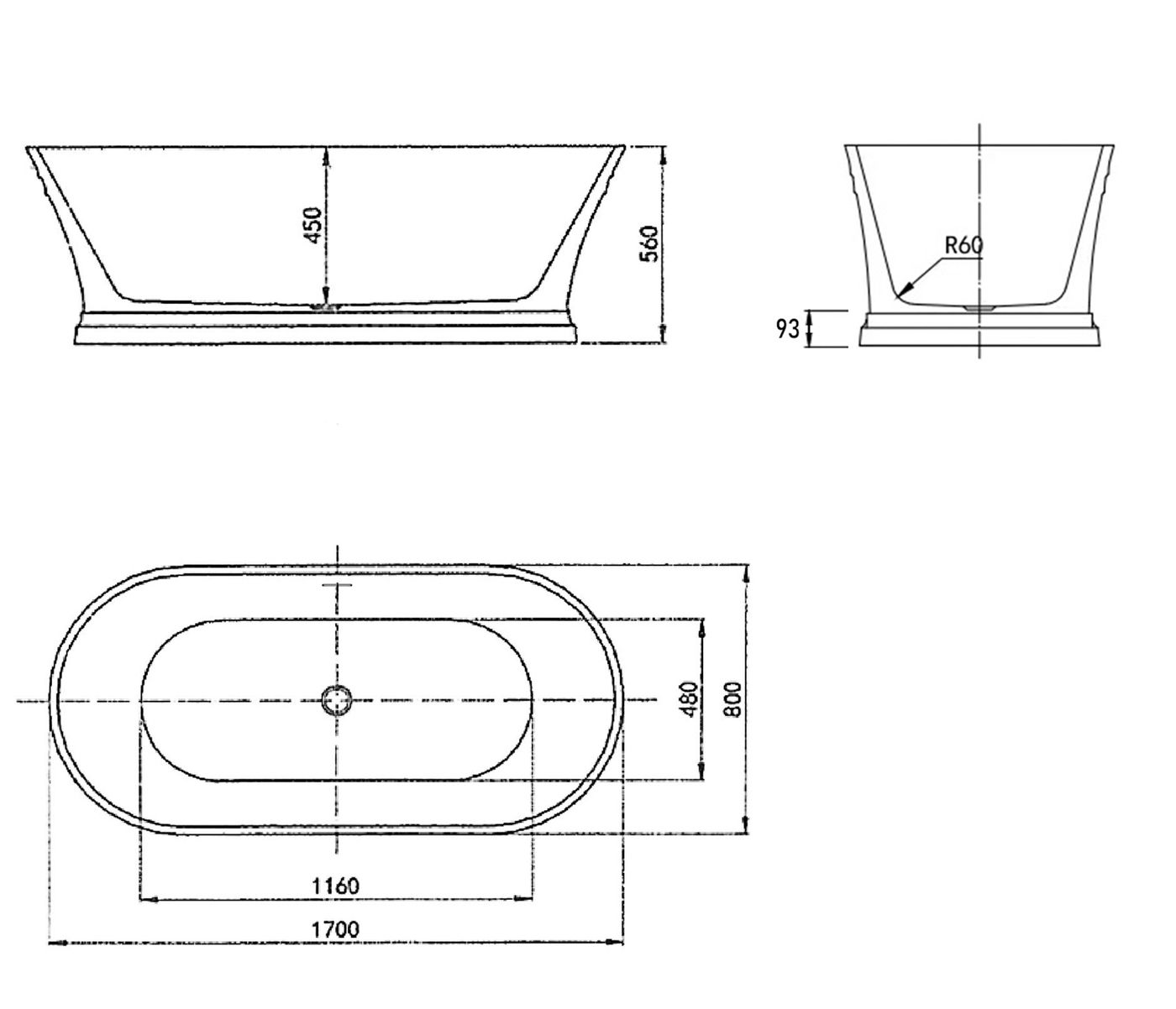 Size 1700x800x560mm