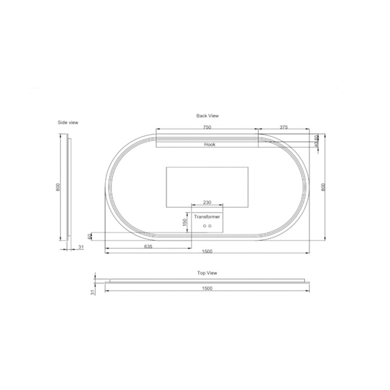1500*800mm Brushed Copper Framed Oval LED Mirror