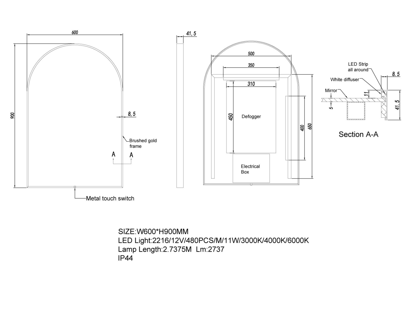 -Arch LED Framed Bathroom Mirror