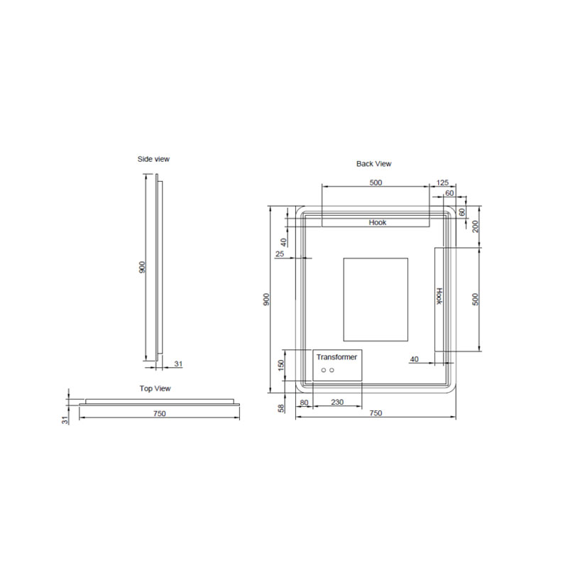 900*750mm Brushed Copper Framed Rectangle LED Mirror