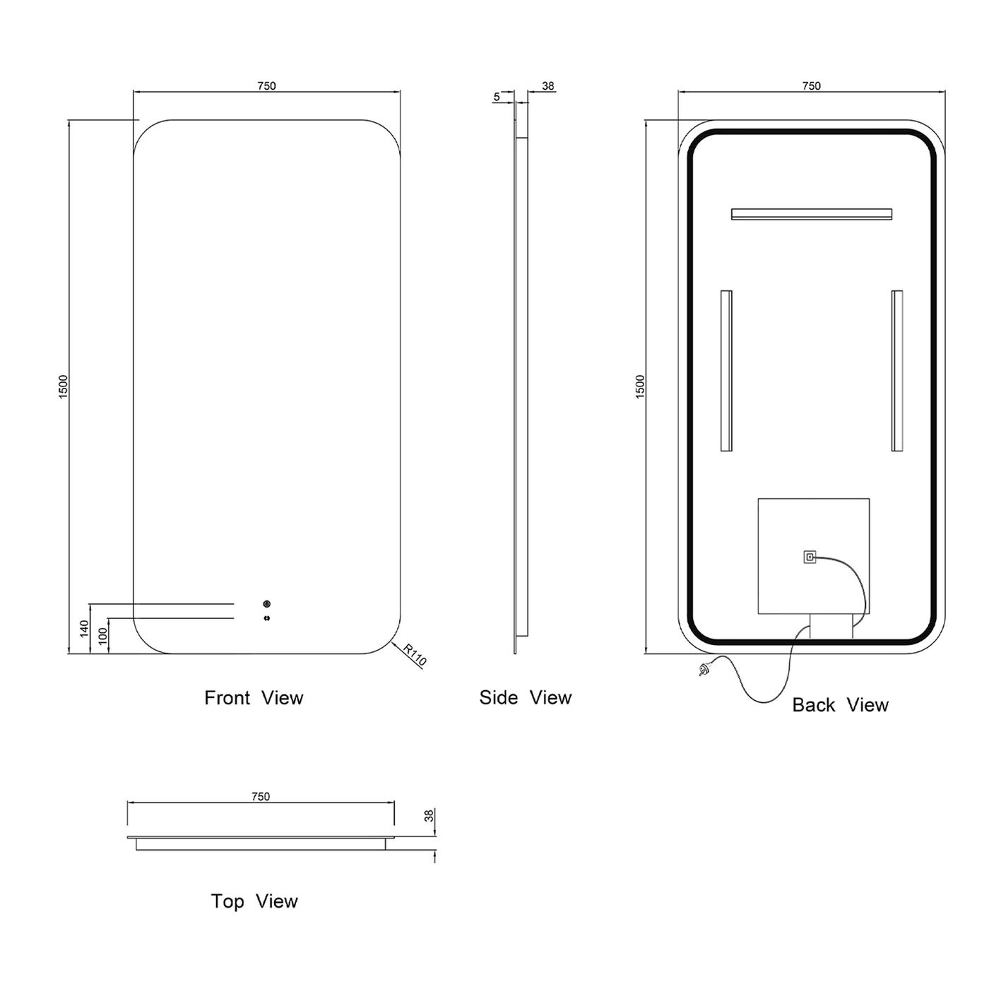 Size 1500(W)x750(H)mm