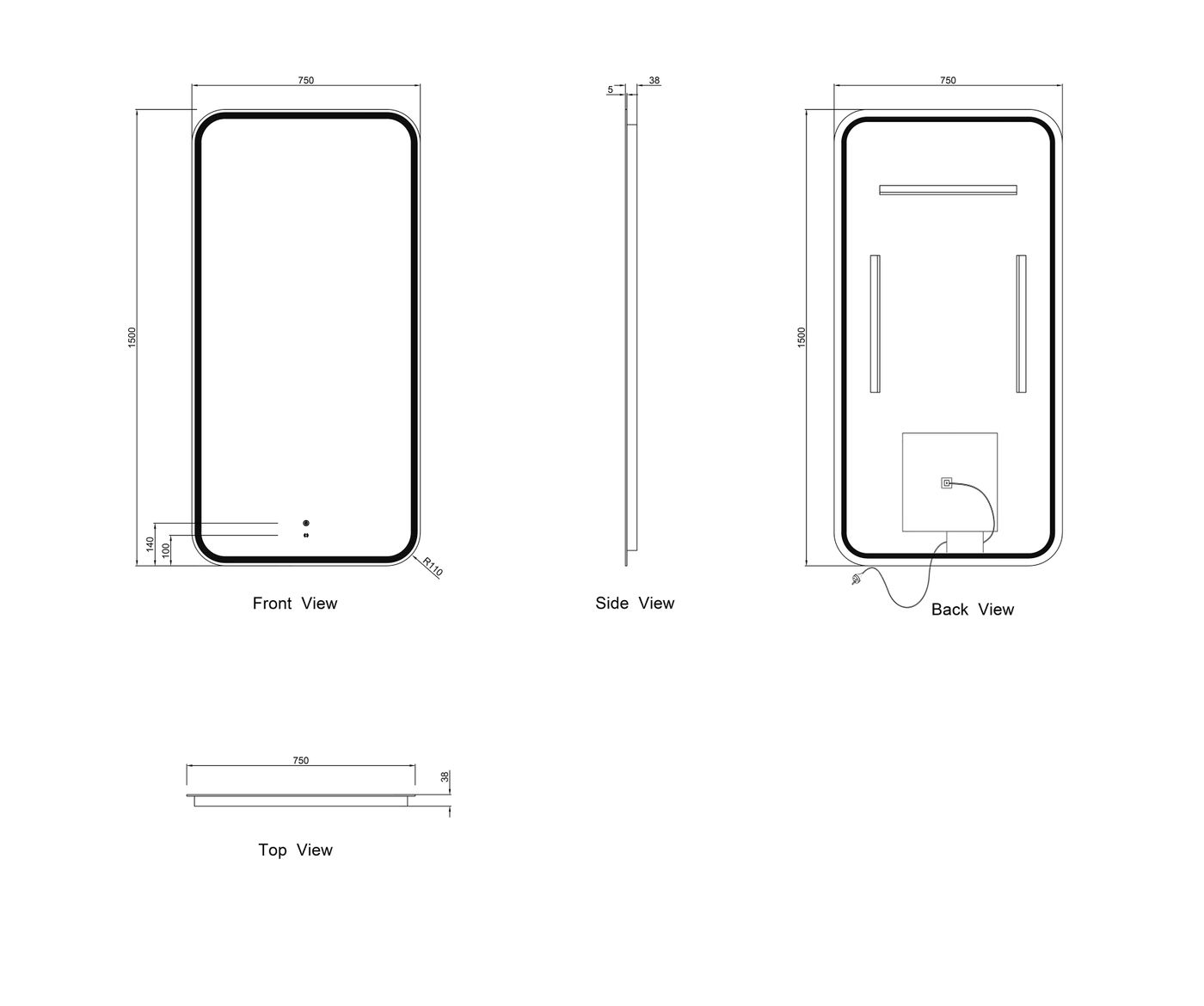 LED Newport 1500(W)x750(H) Frameless Mirror – Install Horizontal or Vertical