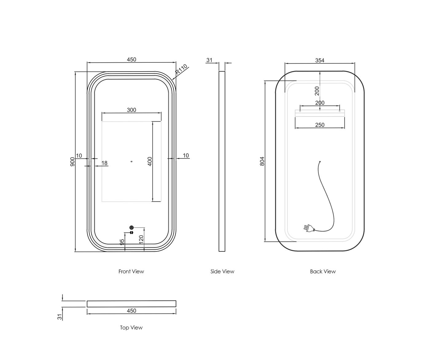 • Anti-fog + 5mm Copper-free mirror (White Metal Frame)
