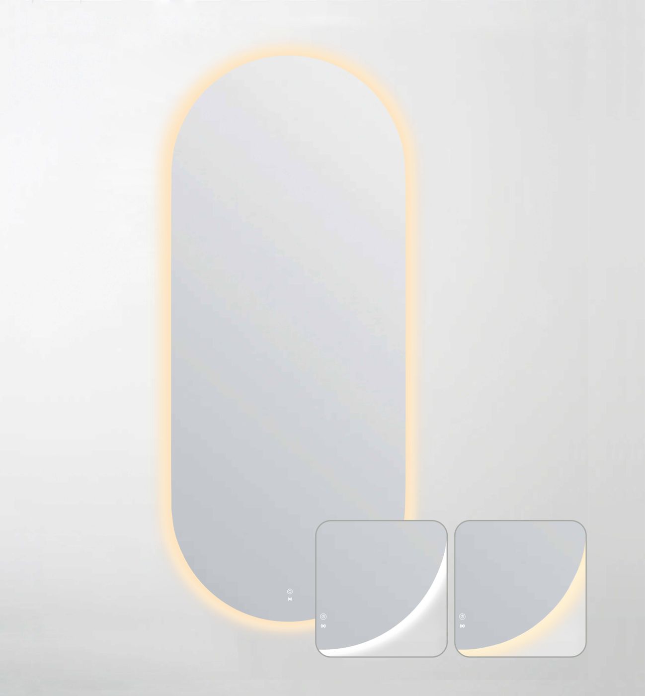 - The mirror lights up with the sensor turning on automatically