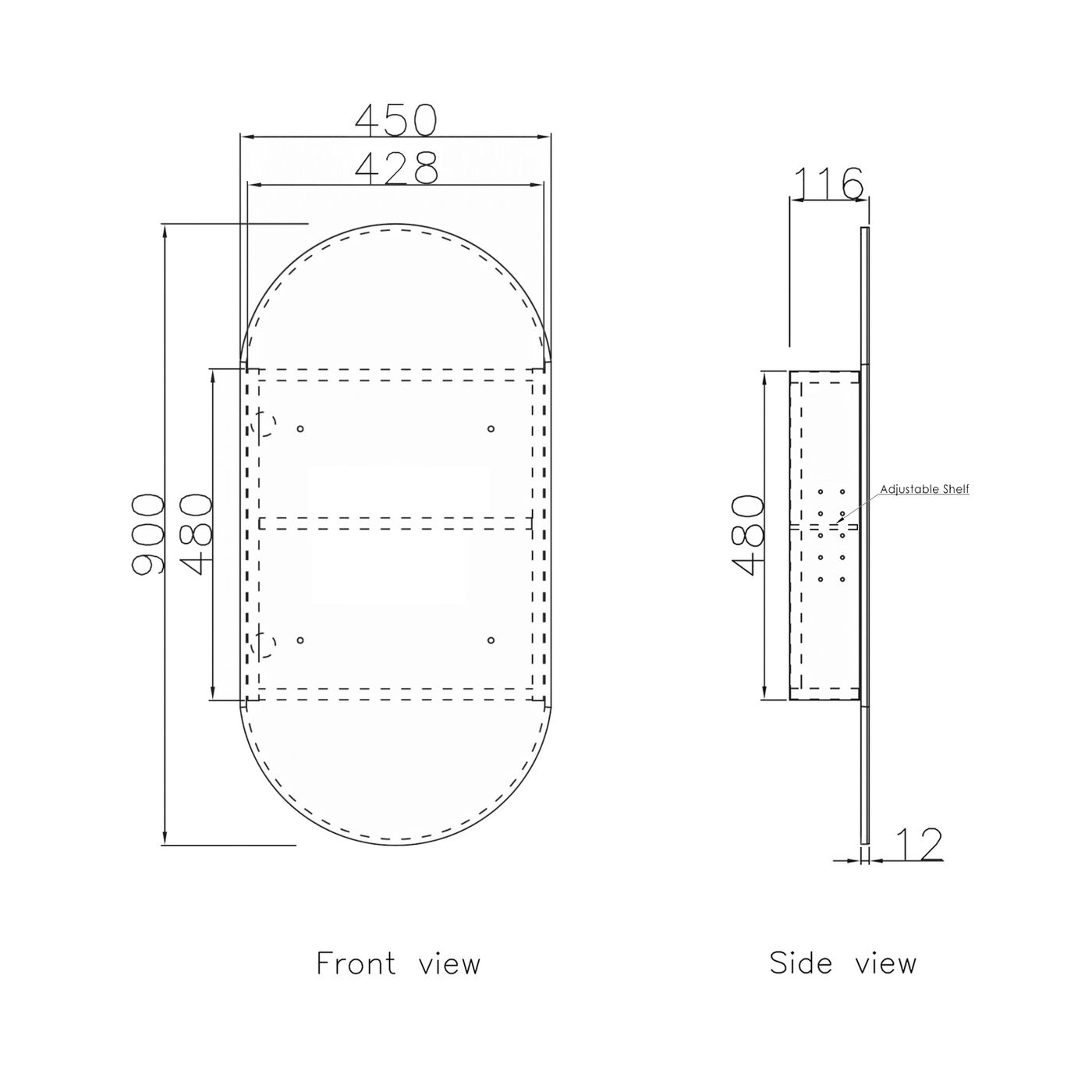 Door          900x450mm  Pill Shape Mirror
