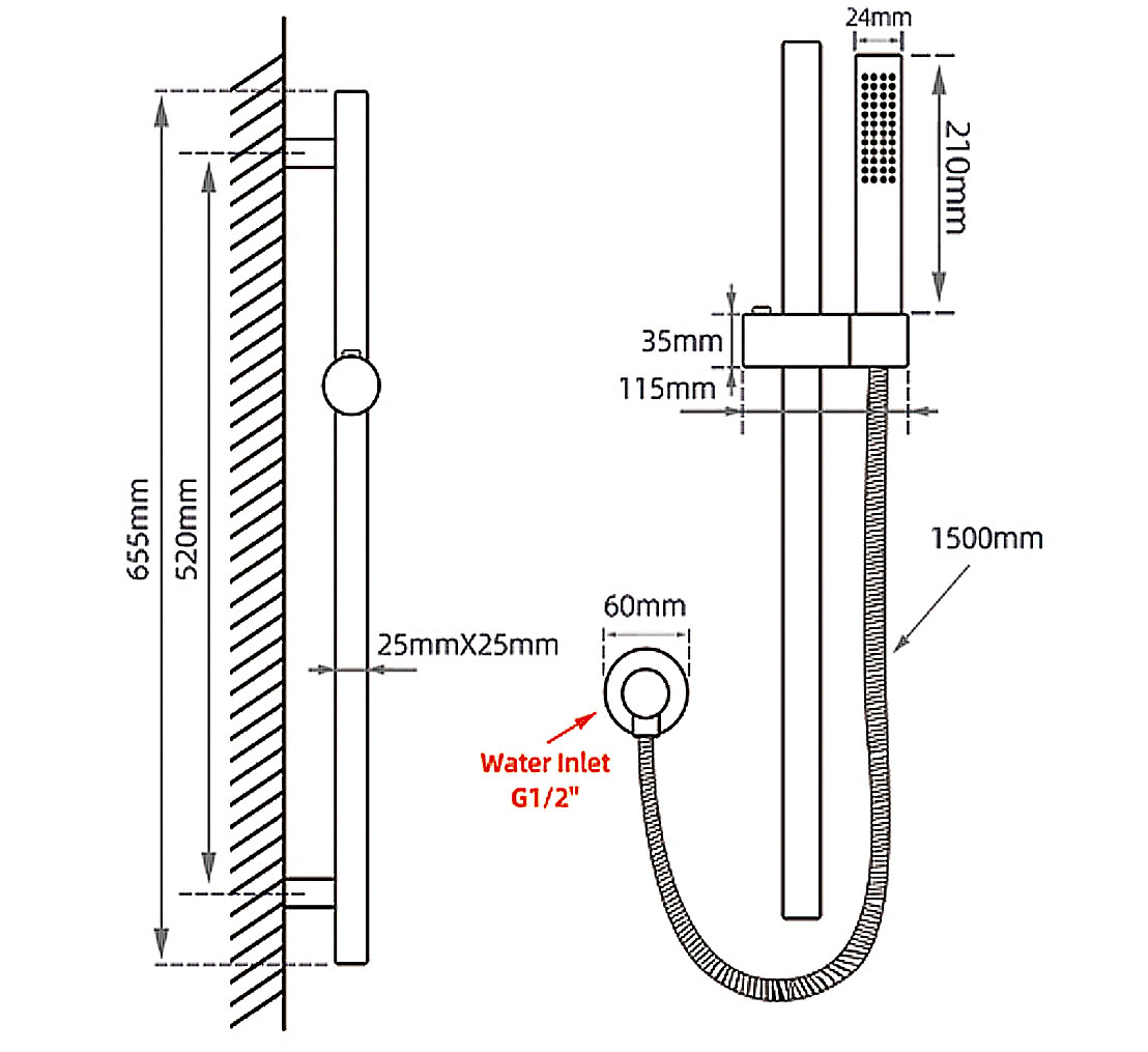 -Wall mounted, G 1/2″ female end adjustable water inlet, for a more flexible installation