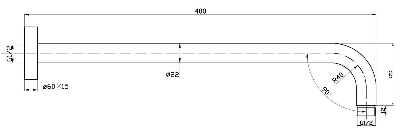 Pavia Round straight wall arm 400mm, Black ,Cover Included