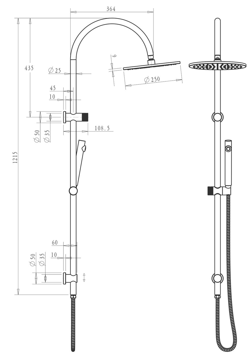 | Configuration | Twin Shower Design- Overhead Rain Shower + Handheld shower |