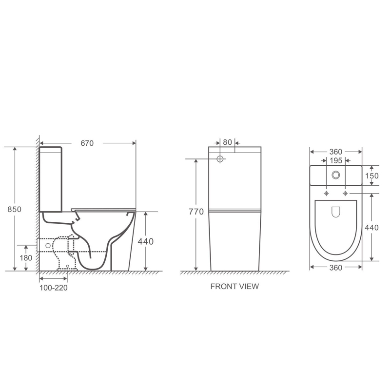 -Dimensions: 670mm D x 360mm W x 850mm H