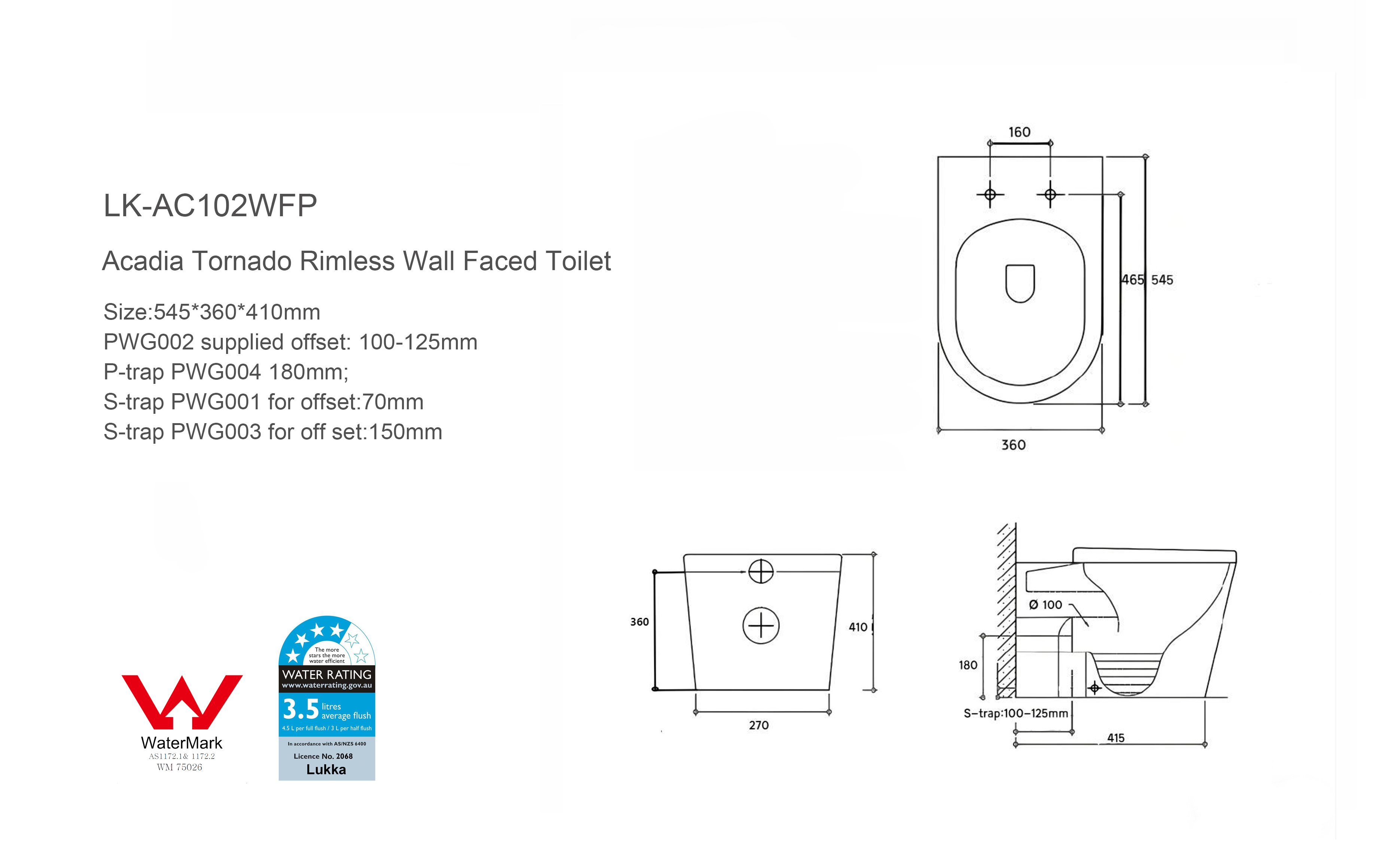 Acadia Tornado Rimless Wall Faced Floor Pan LK-AC102WFP/LK-AC102WFP-MW/LK-AC102WFP-MB
