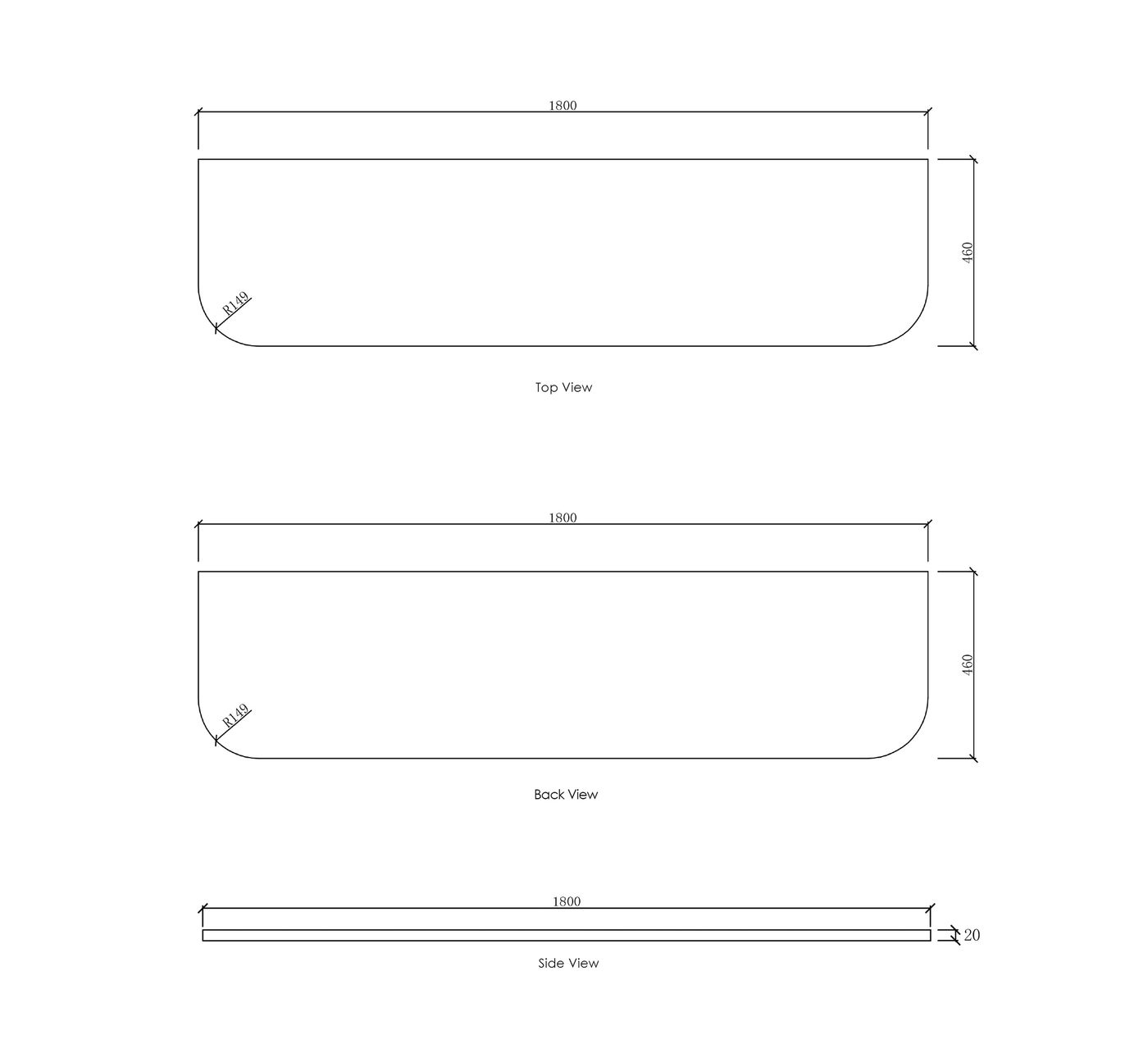 Bondi 1500x460x20 Pure White Top No Hole