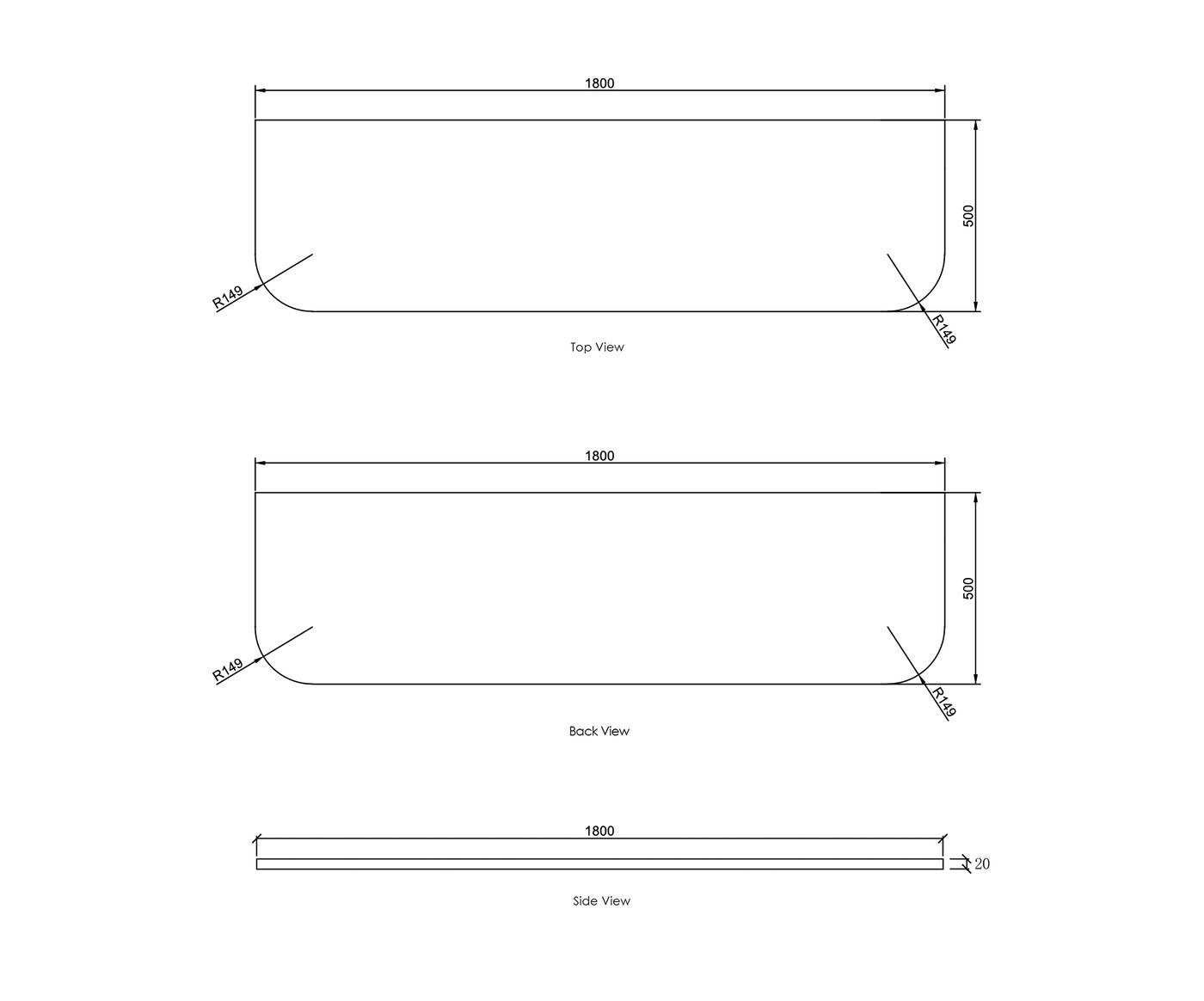 Havana 1800x500x20 Solid Surface Cloudy Carrara Top No Hole