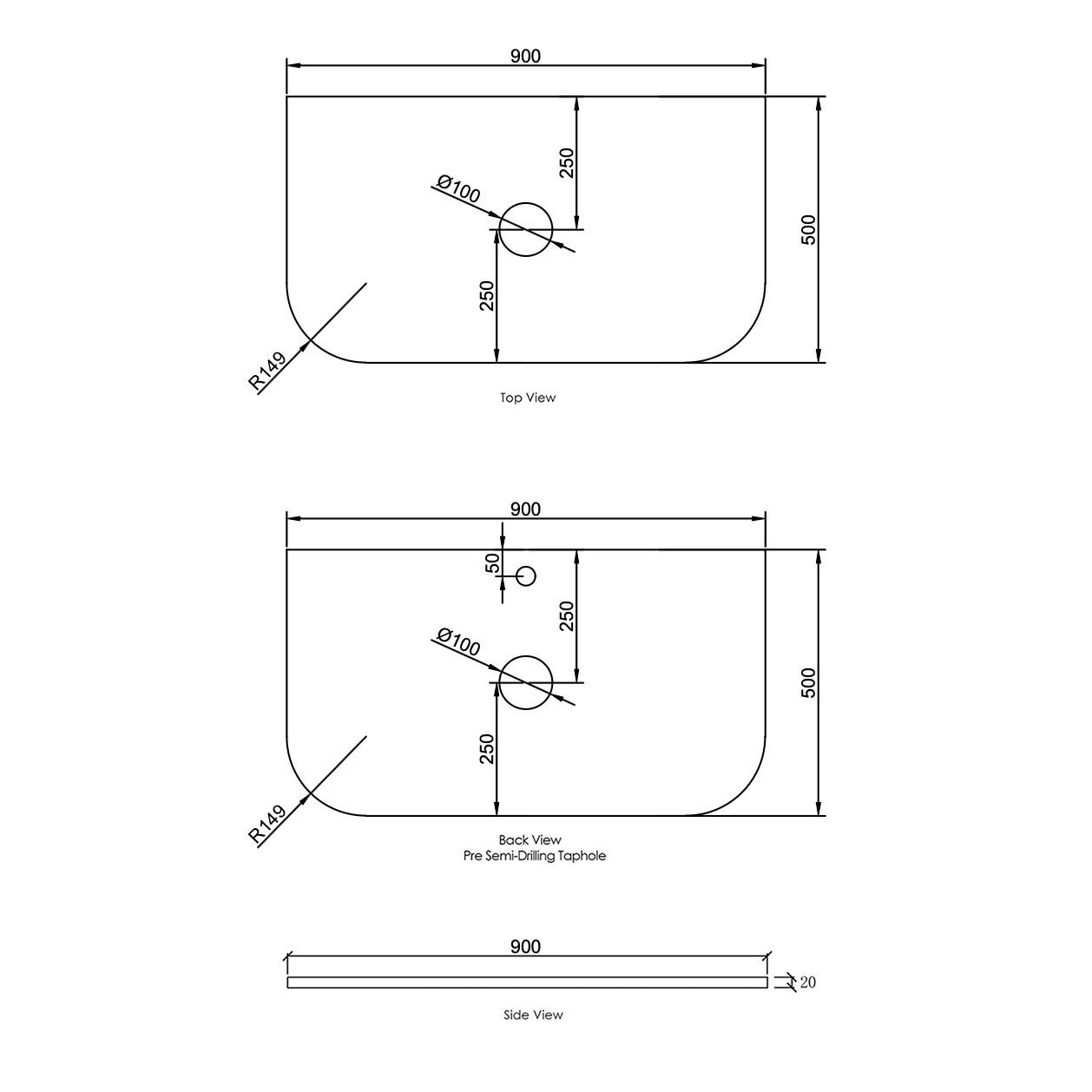 - Havana 900x500x20 Solid Surface Cloudy Carrara Top