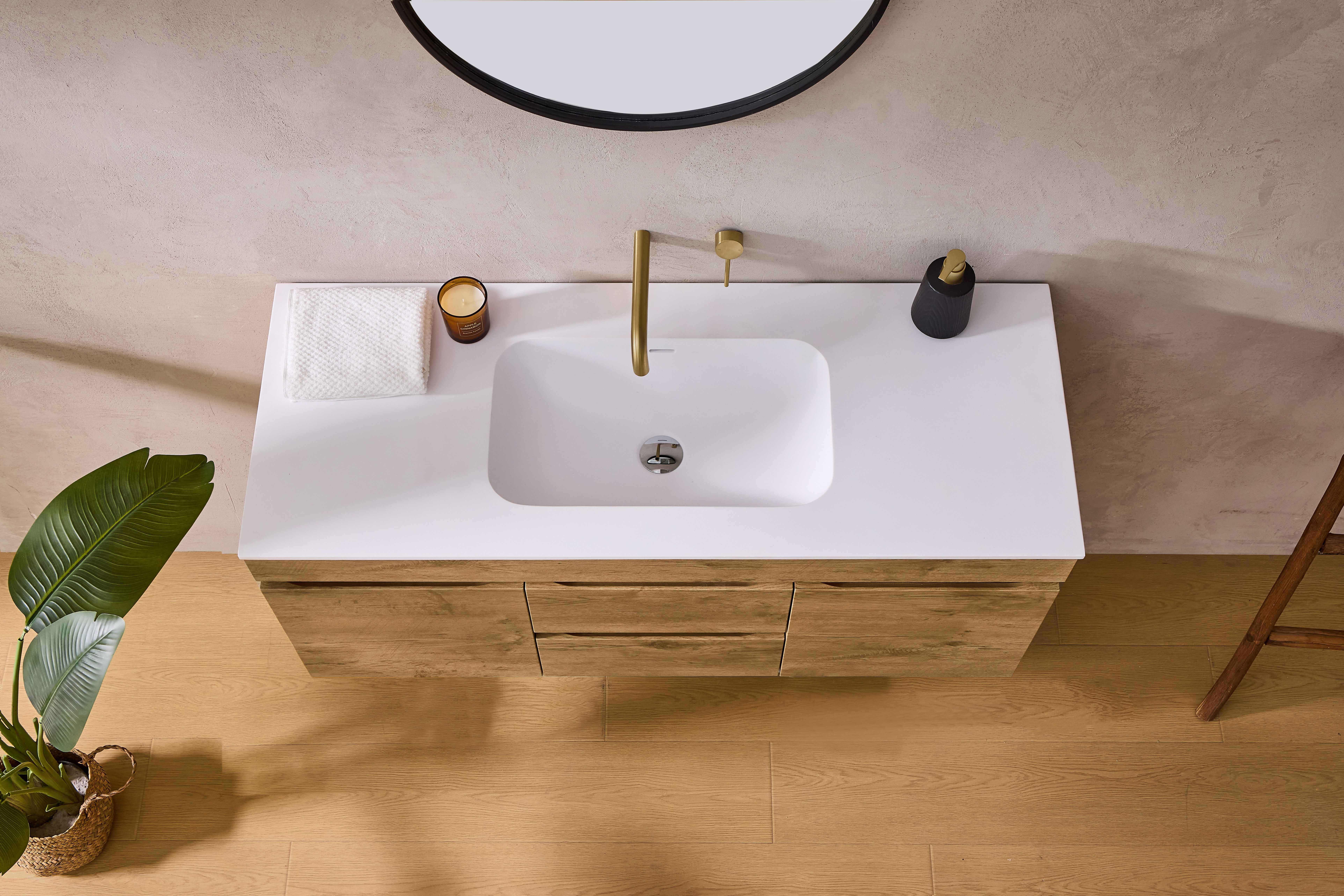 Qubist PVC Filmed Wall Hung, Four Drawers, 1200*460*500mm, White Oak, Double Bowl