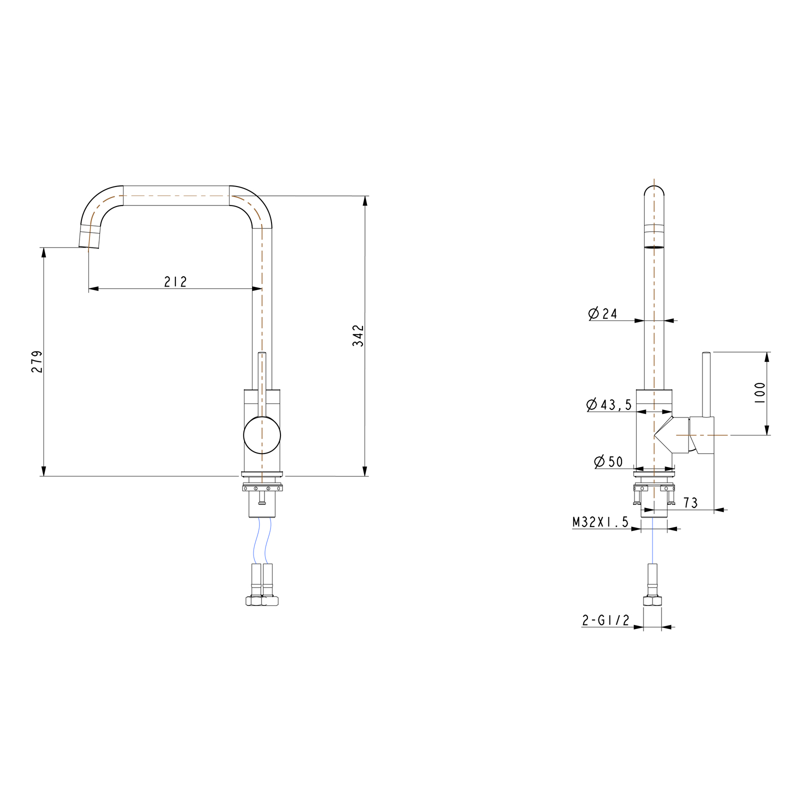 -1 x kitchen mixer, 2 x hoses, 1 x fixing screw kit