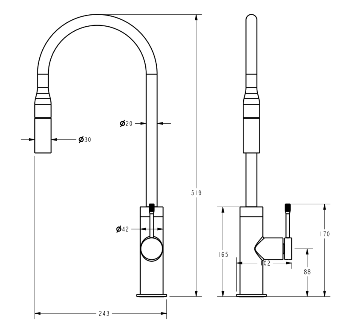 -Solid brass kitchen mixer tap with pulls out hose