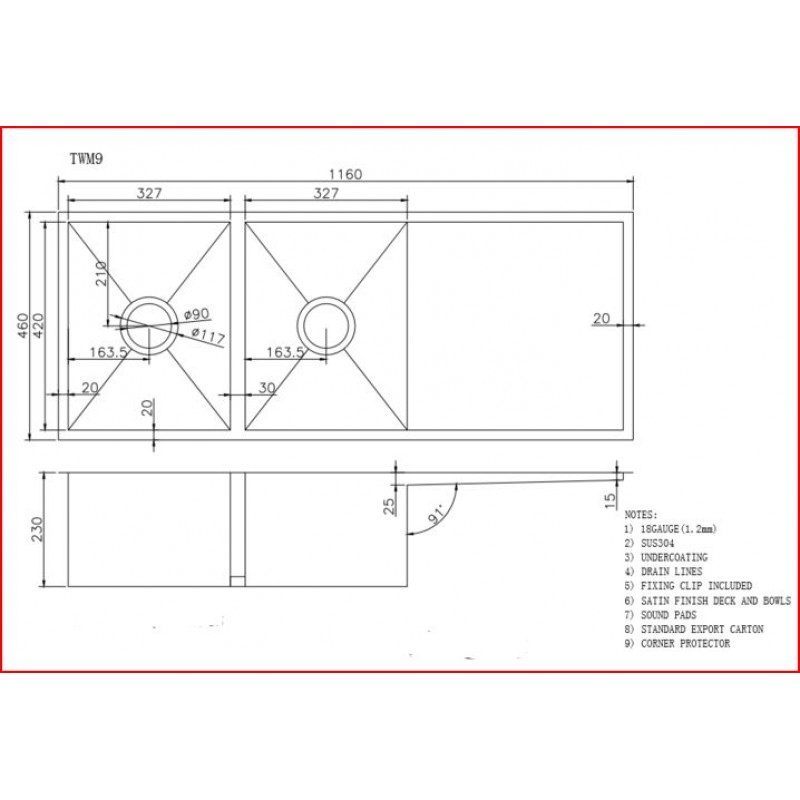 -Waste strainer diameter: 90mm