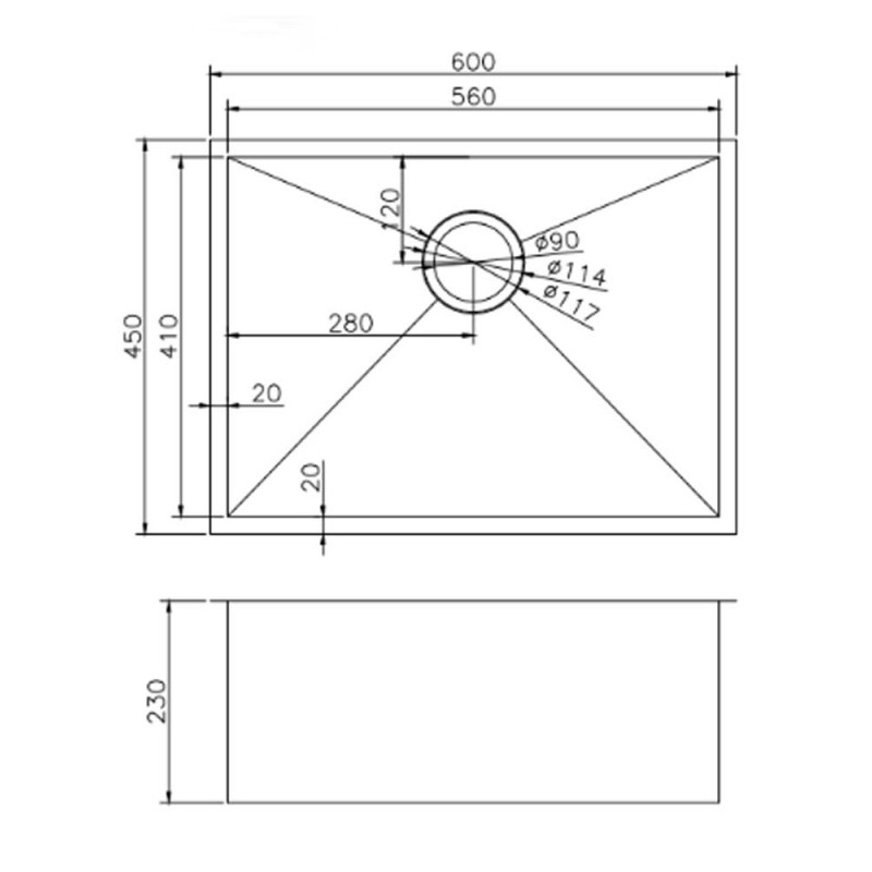 -Stainless Steel Sink w/ Strainer Waste 600x 450mm