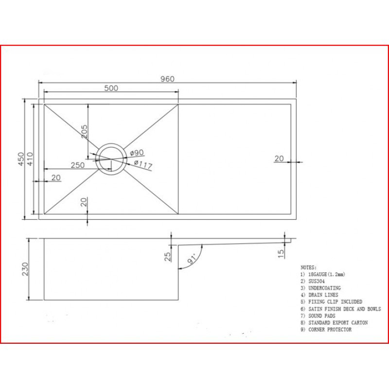 -Overall size: 960mmL x 450mmW x 230mmH