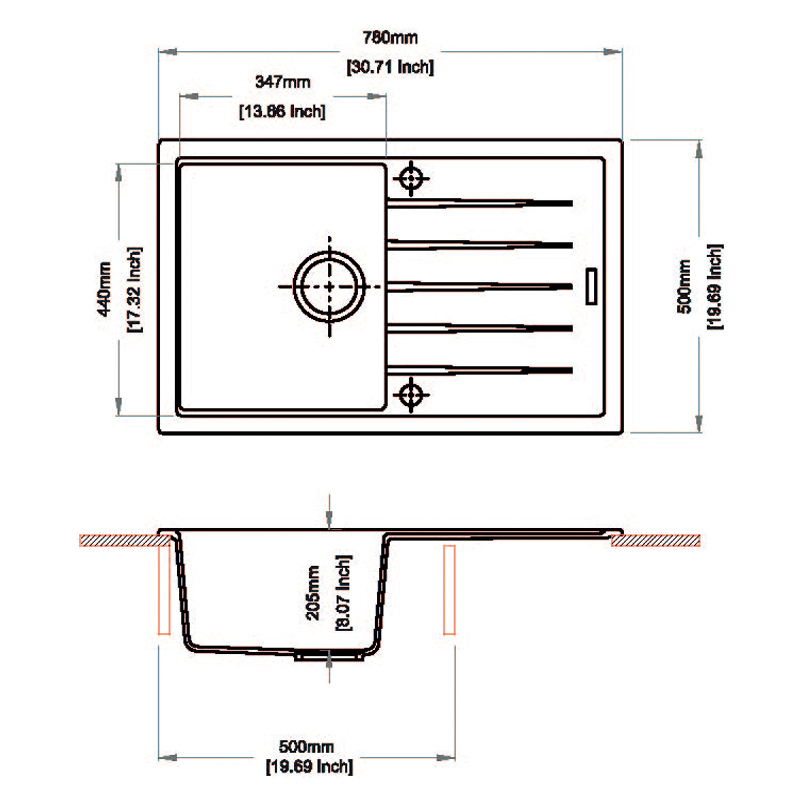 -Cut Out Size: 760 mm x 480 mm X 205 mm (Reference Only)