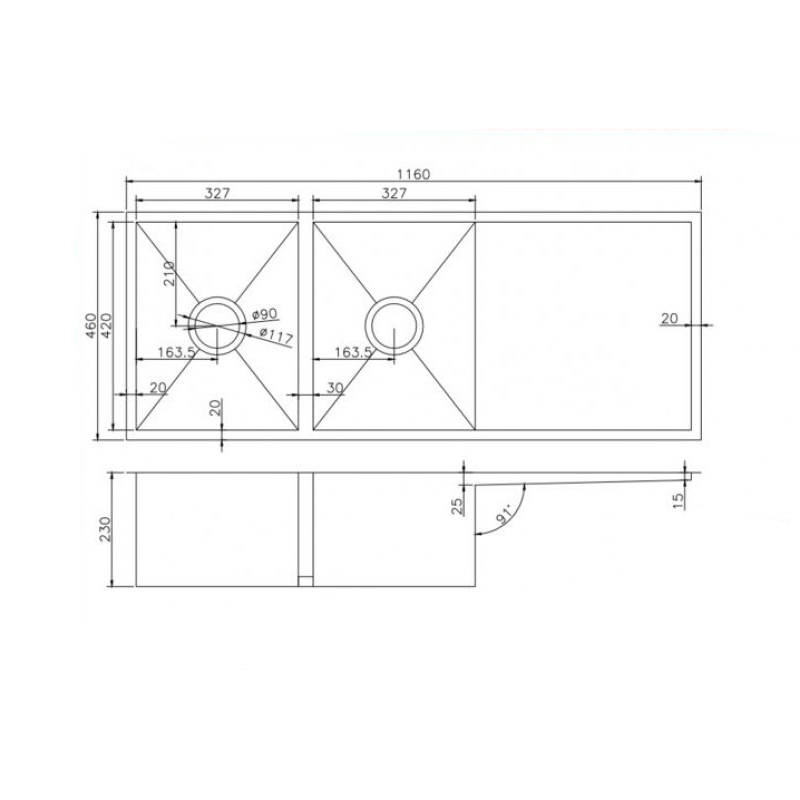 -Waste strainer diameter: 90mm